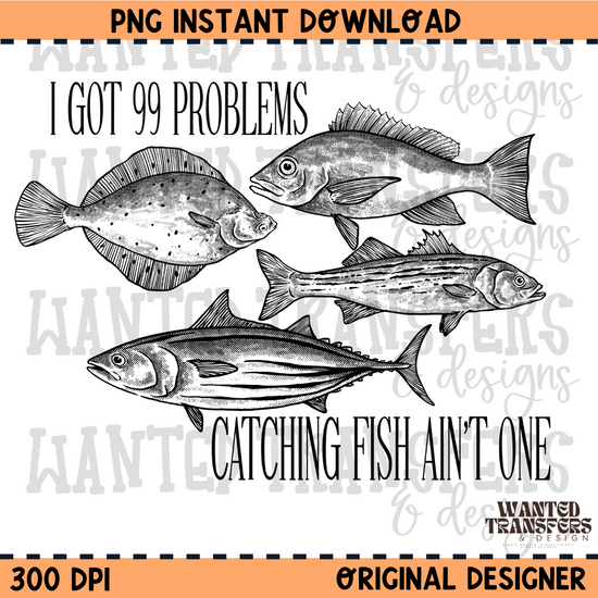 99 Problems Catching Fish Ain't One PNG Digital Download