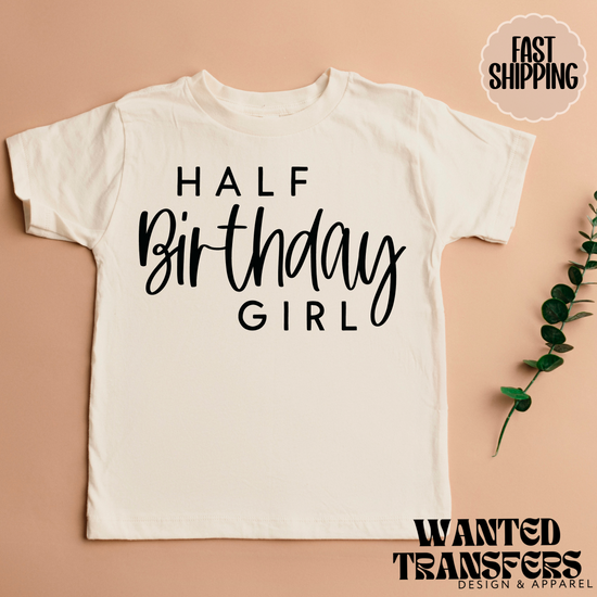 Half Birthday Girl, Girls Birthday Shirt, Tee, Onesie, Birthday Girl, All Ages, Toddler, Youth, Kids Bday, Minimalist