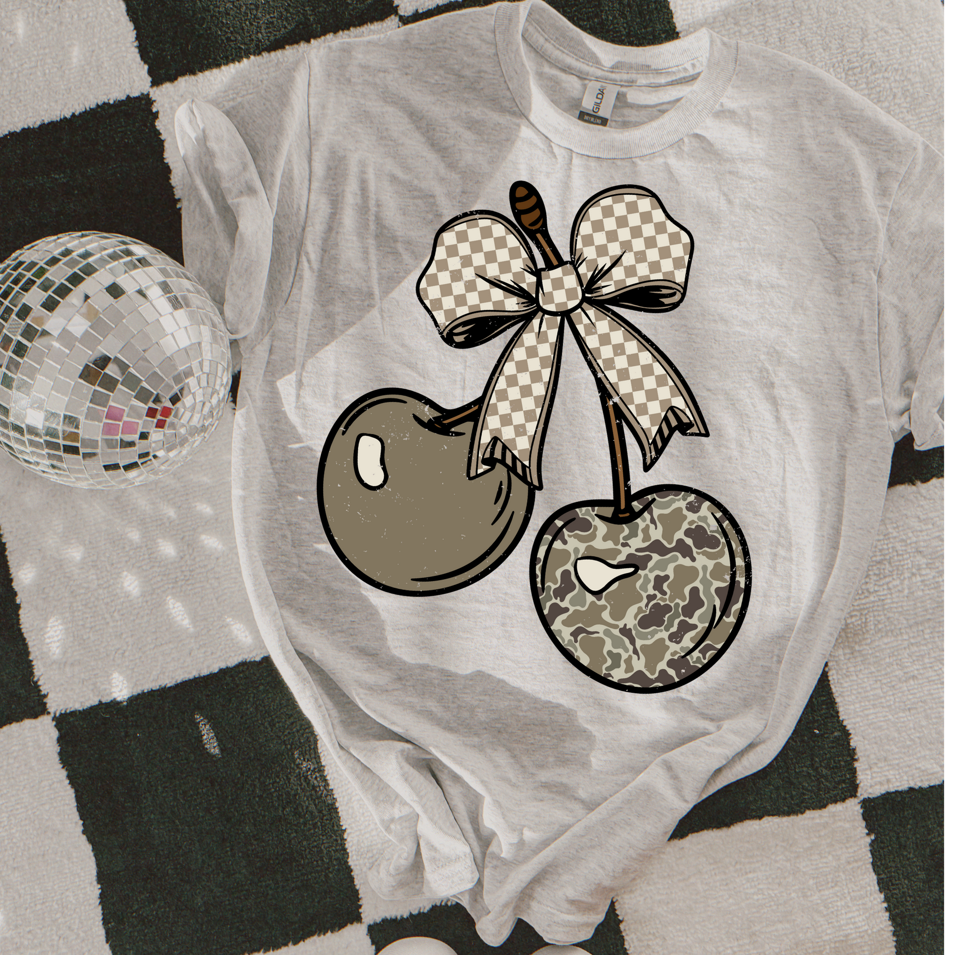 Camo Checkered Cherry Clear Film Screen Print Transfer