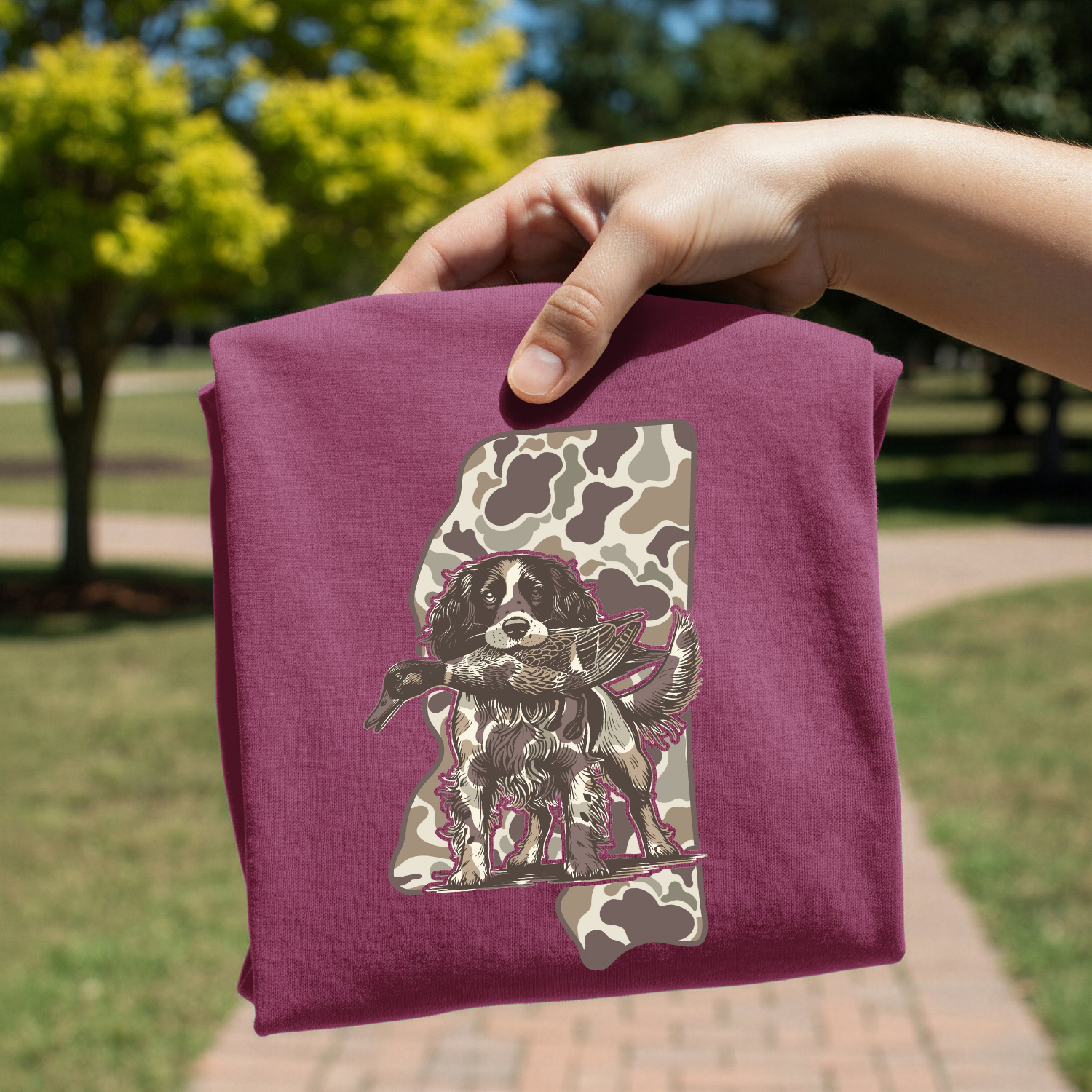 Camo Mississippi Spaniel Hunt DTF Transfer