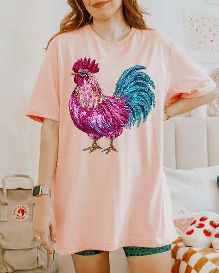 Faux Rhinestone Colorful Rooster DTF Transfer