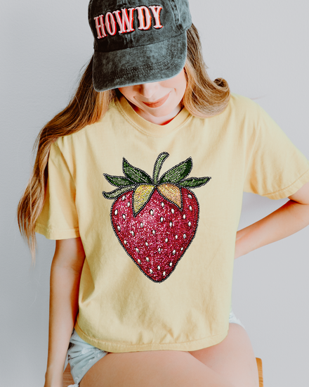 Faux Rhinestone Strawberry DTF Transfer