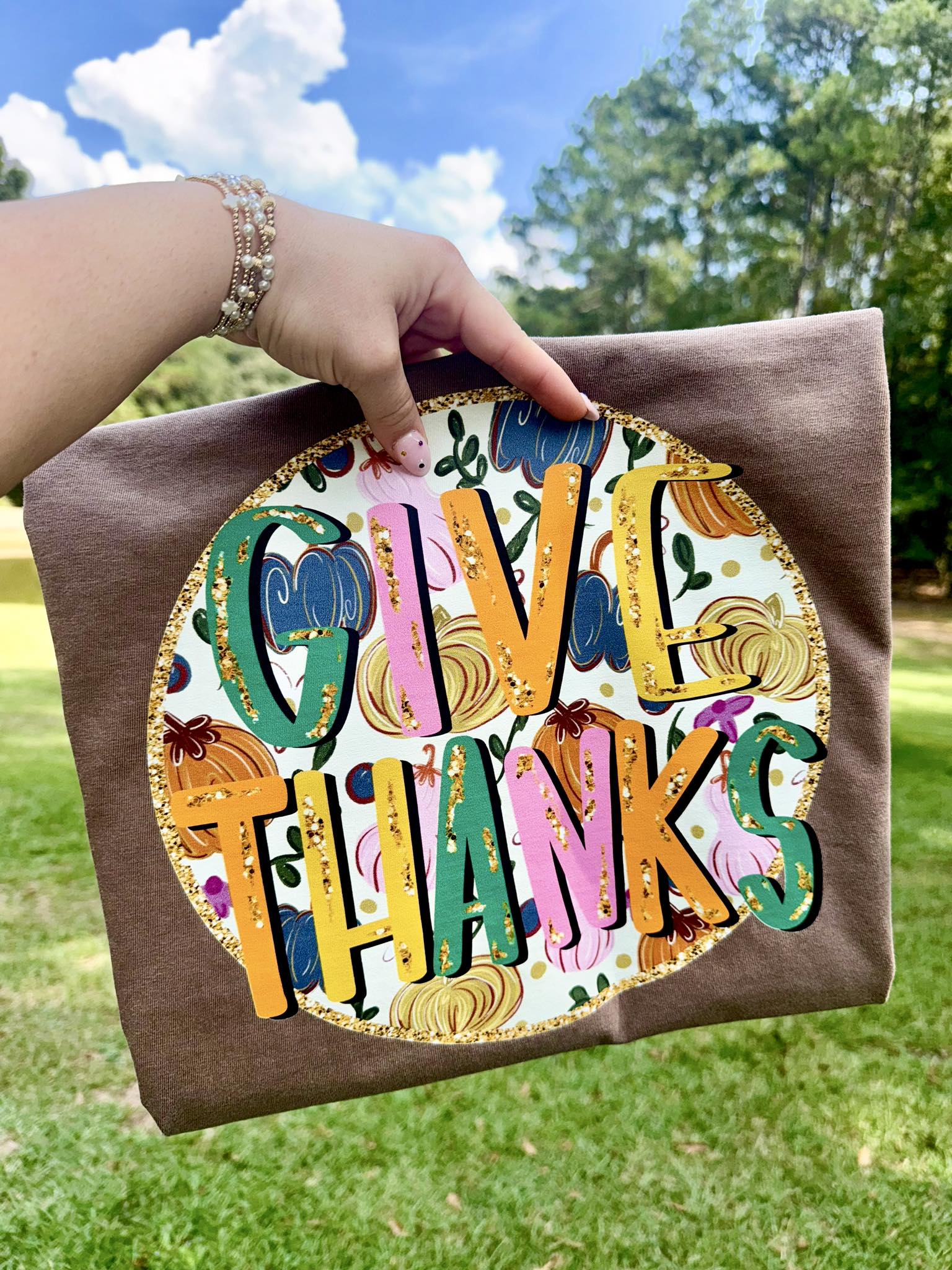 Give Thanks Glitter Thanksgiving DTF Transfer