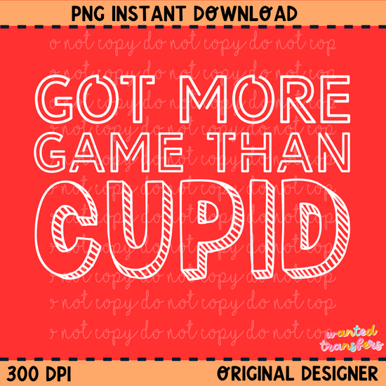 Got More Game Than Cupid White Valentine's PNG Digital Download