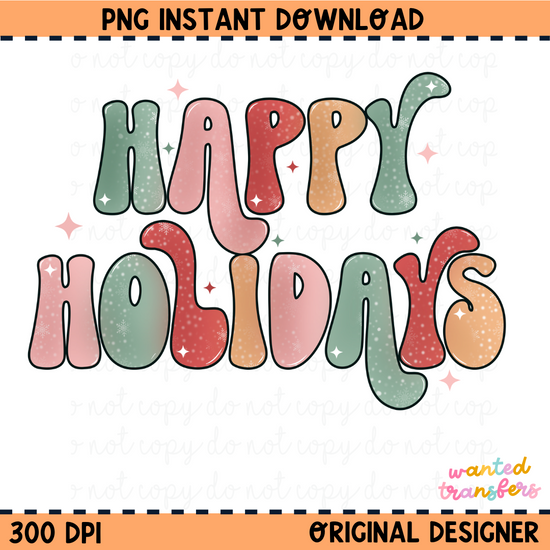 Happy Holidays Snowflakes Christmas PNG Digital Download