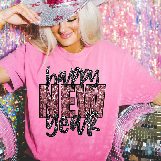 Happy New Year Faux Sequin DTF Transfer