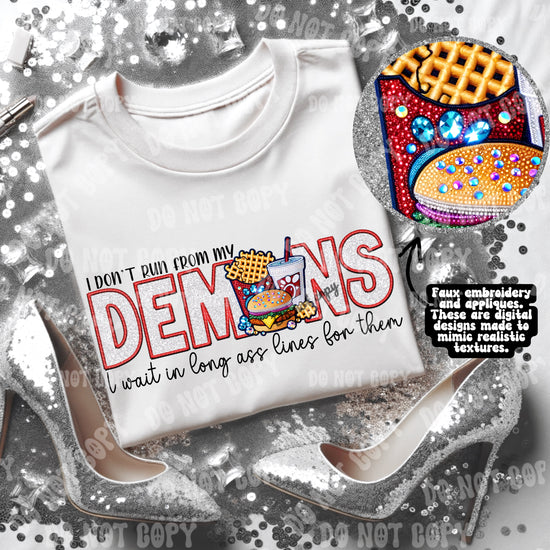 I Don't Run from my Demons, I Wait in Long Ass Lines for Them DTF Transfer