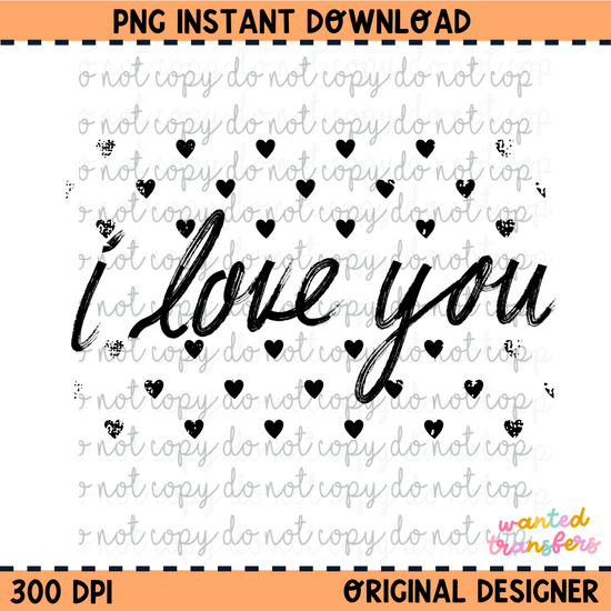 I Love You Retro Hearts PNG Digital Download
