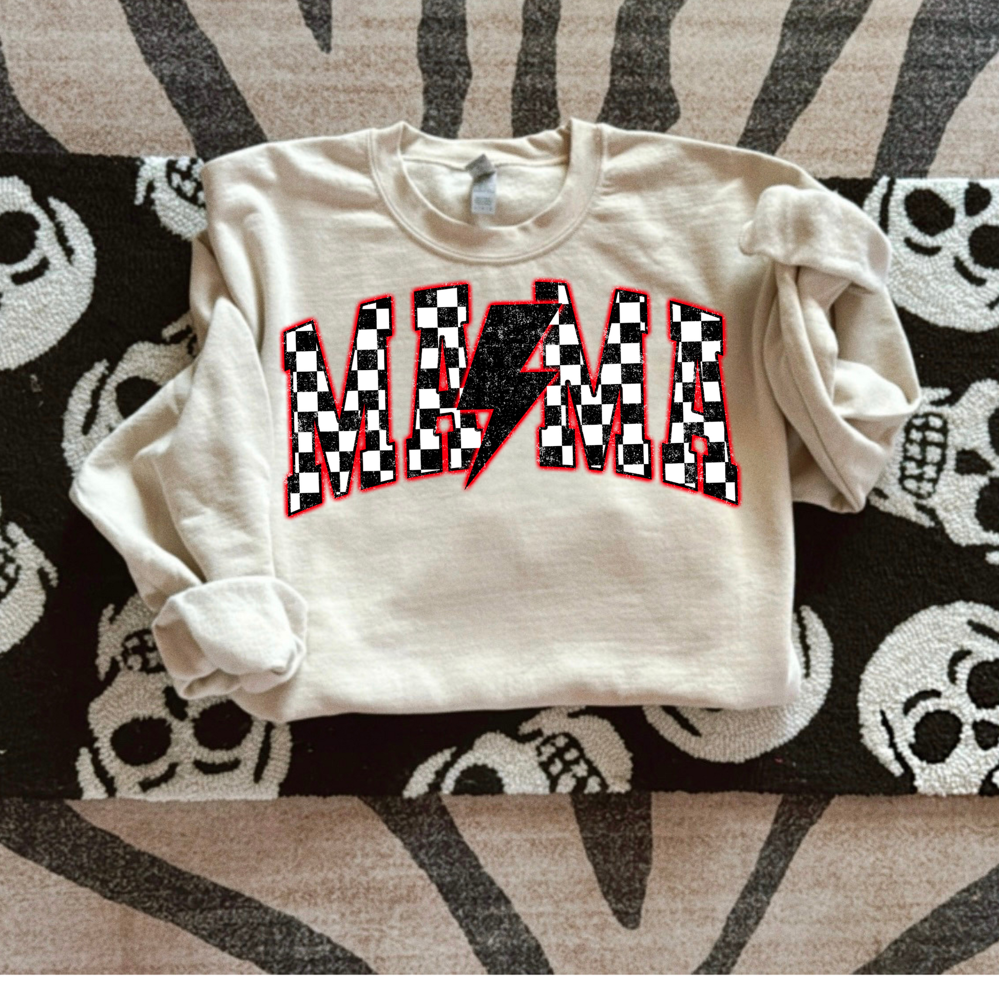 Mama Neon Red Lightening Bolt DTF Transfer