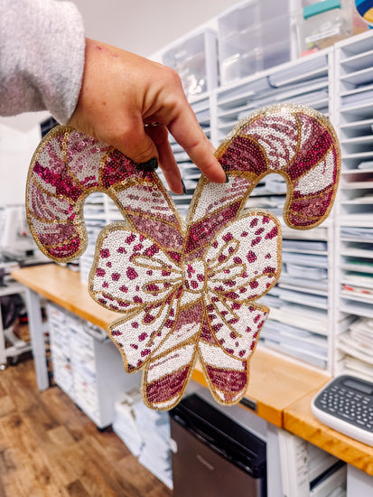 Pink Candy Cane Christmas Sequin Patch (Adult Size)