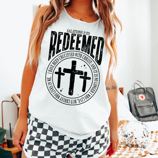 Redeemed Galations 2:20 Black Font DTF Transfer