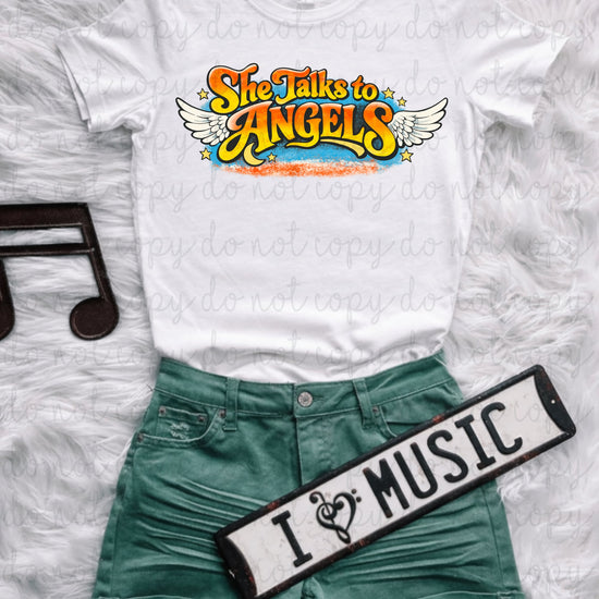 She Talks To Angels Blue DTF Transfer