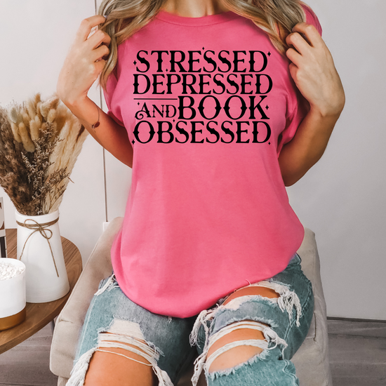 Stressed, Depressed, & Book Obsessed DTF Transfer