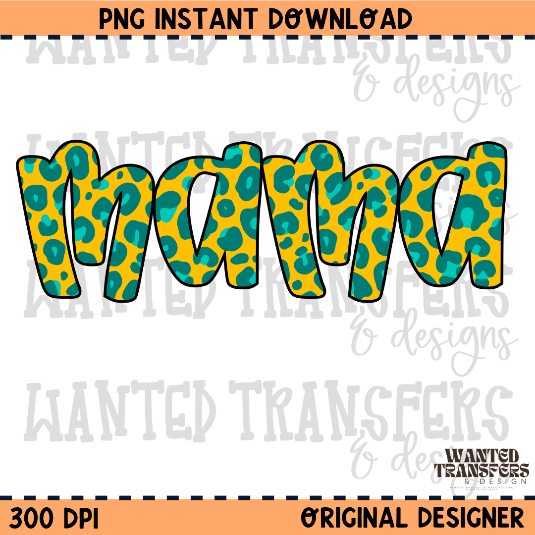 Yellow/Teal Leopard Mama Summer Neon PNG Digital Download